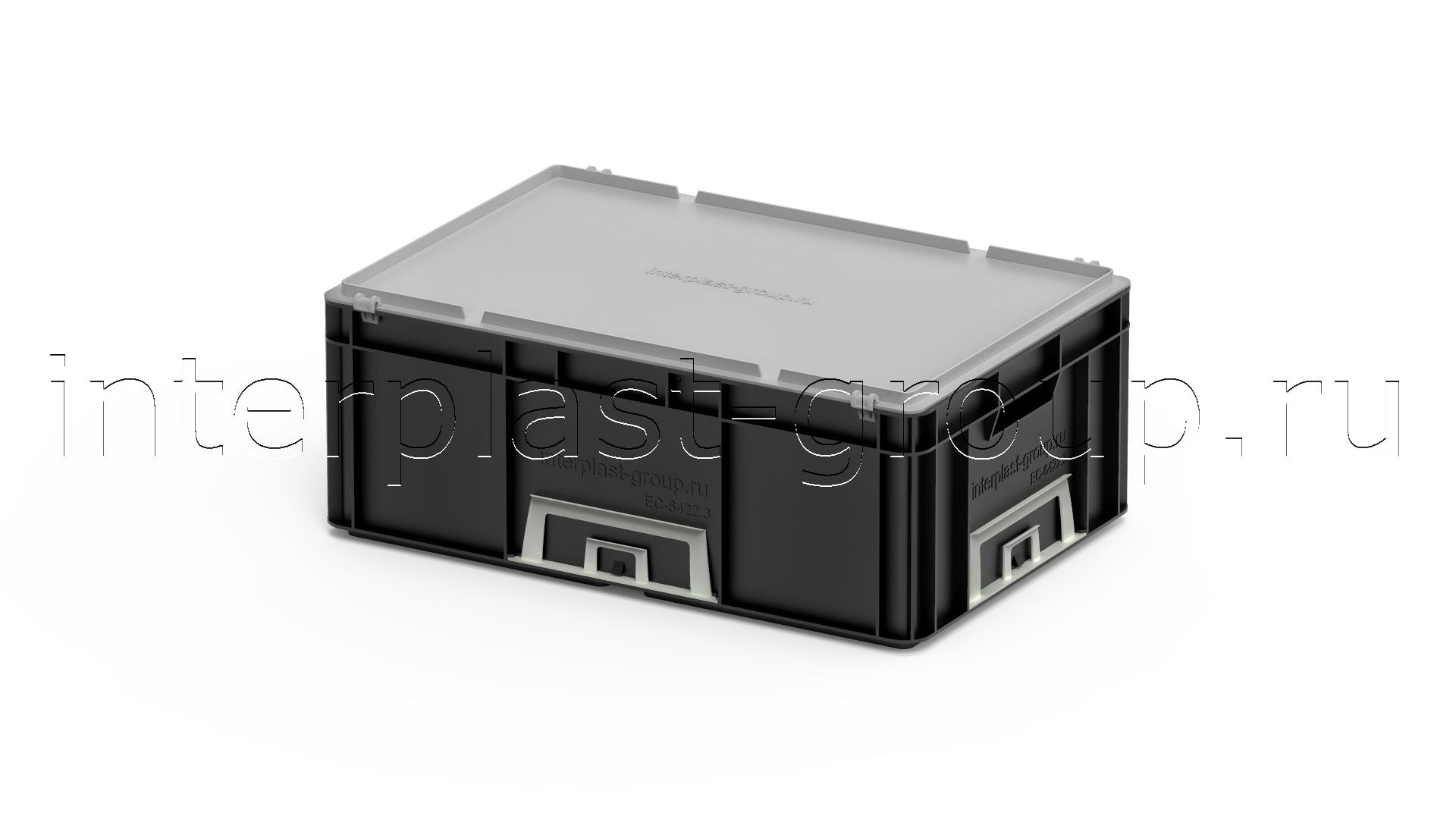 Евроконтейнер открытые ручки/усиленное дно (черный), 600x400x220 мм
