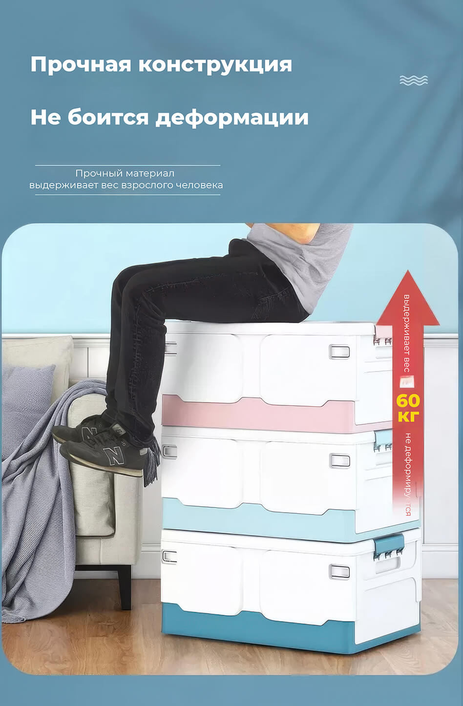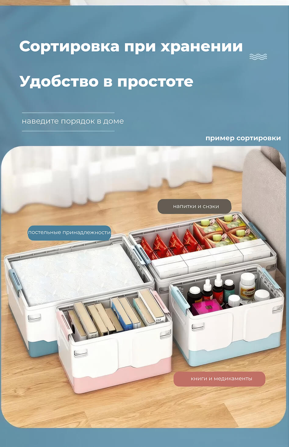 Складной ящик 370х240х240 мм голубого цвета – свежесть, чистота и порядок в вашем доме