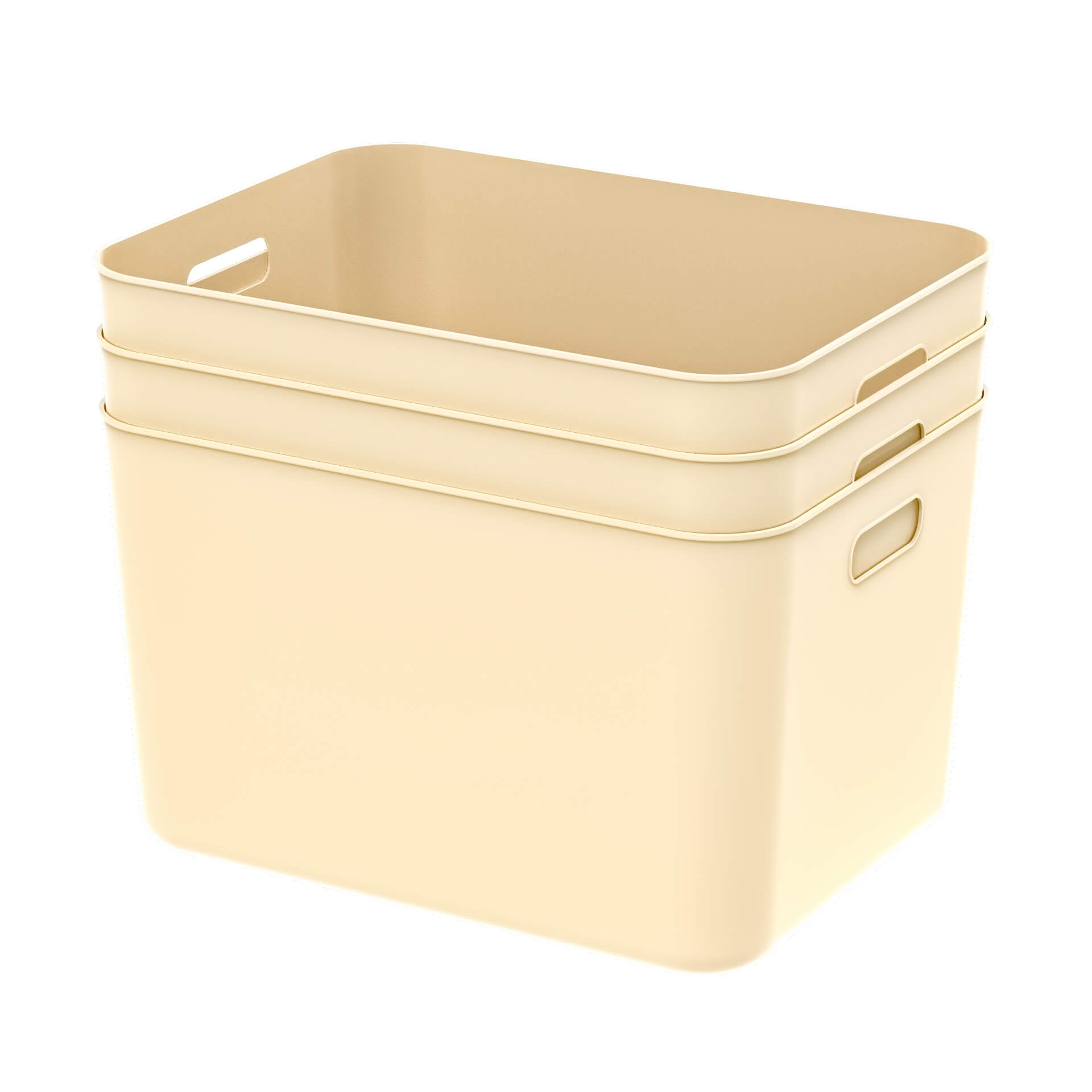 Вкладываемый пластиковый ящик 410х305х245 мм, бежевый, с открытыми ручками и крышкой – удобное и надежное решение для хранения