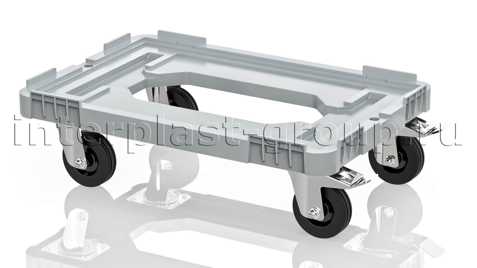 Тележка пластиковая с отверстием 2 колеса с тормозом серая в Красногорске